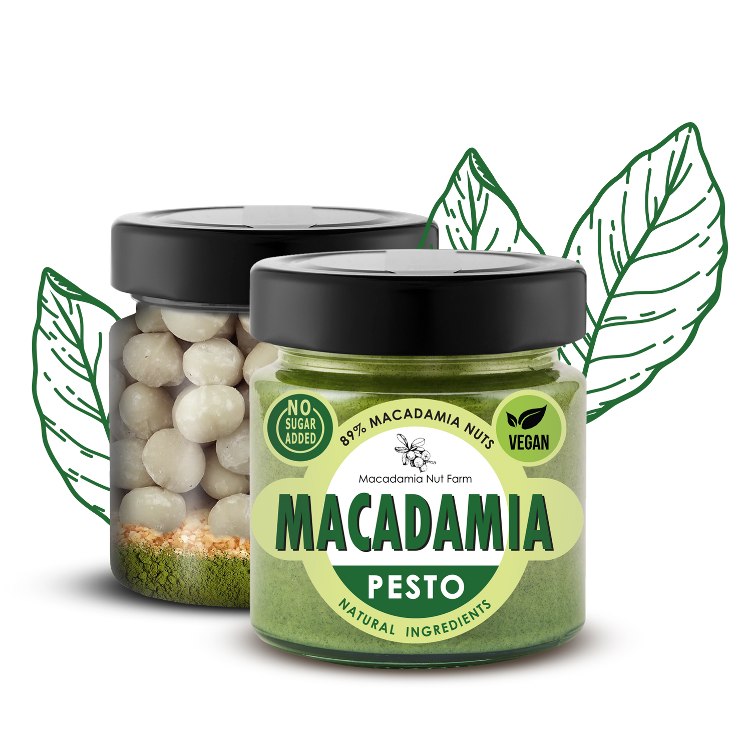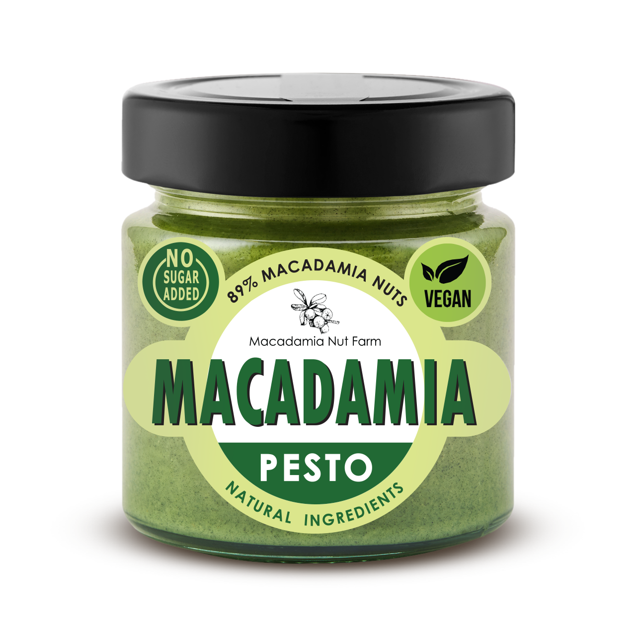 Makadamijų riešutų PESTO yra švelnus, kreminės tekstūros ir turtingo skonio kremas, kuriame dominuoja makadamijų riešutai.